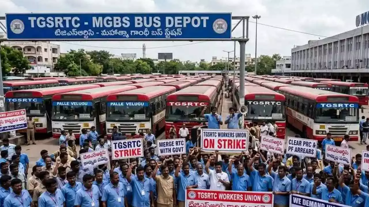 సమ్మెతో హైదరాబాద్ సహా రాష్ట్రవ్యాప్తంగా ప్రయాణికులకు కష్టాలు. అద్దె బస్సులు, ప్రైవేట్ వాహనాలపై ఆధారపడుతున్న ప్రజలు.